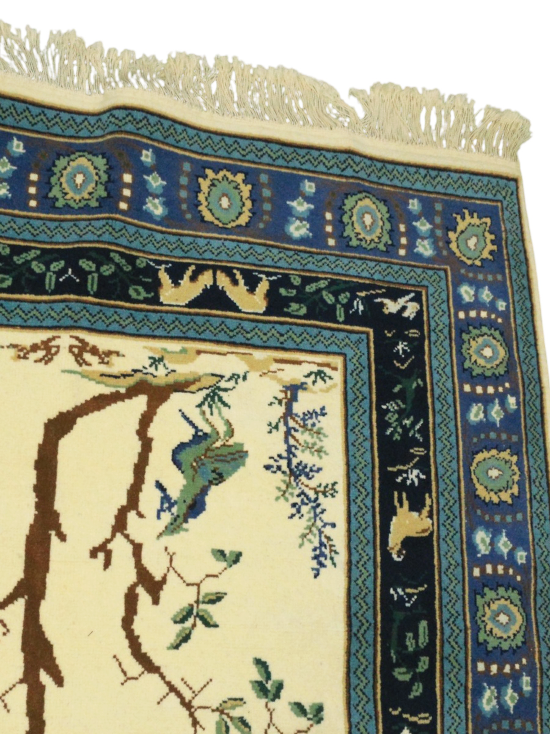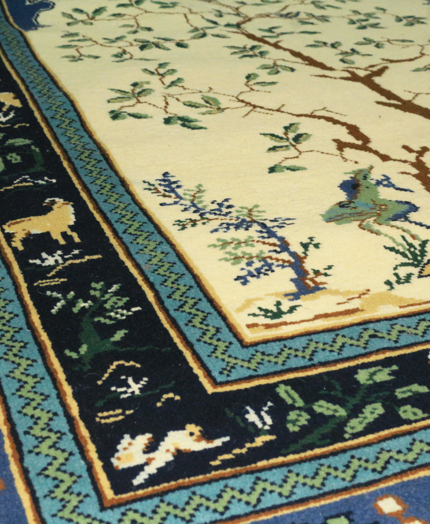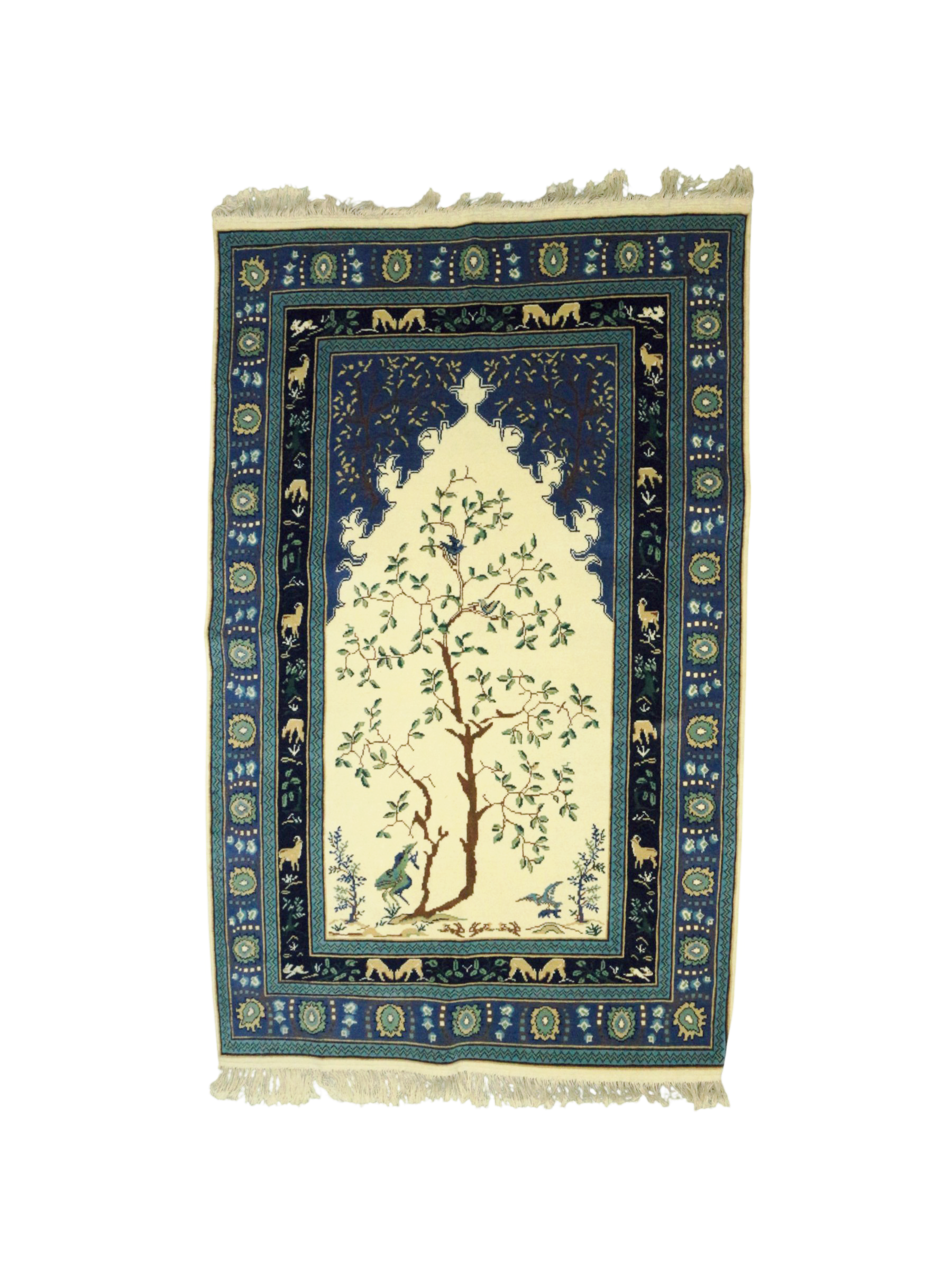 & Free ShippingL’Arbre des Rois is a breathtaking handwoven piece that symbolizes life, growth, and harmony. At its heart stands a majestic tree, surrounded by animals and delicate foliage, all framed in a deep blue border evoking a starry night. A rug full of poetry and heritage — perfect for art collectors, spiritual spaces, or interiors seeking elegance and depth.
