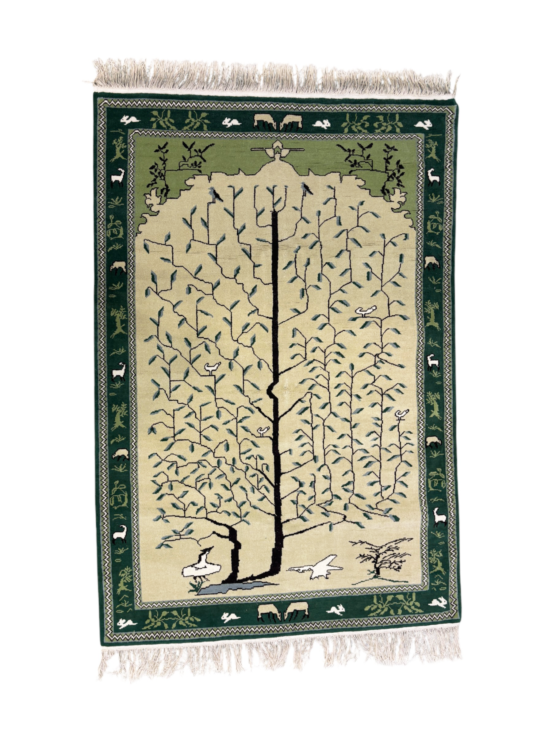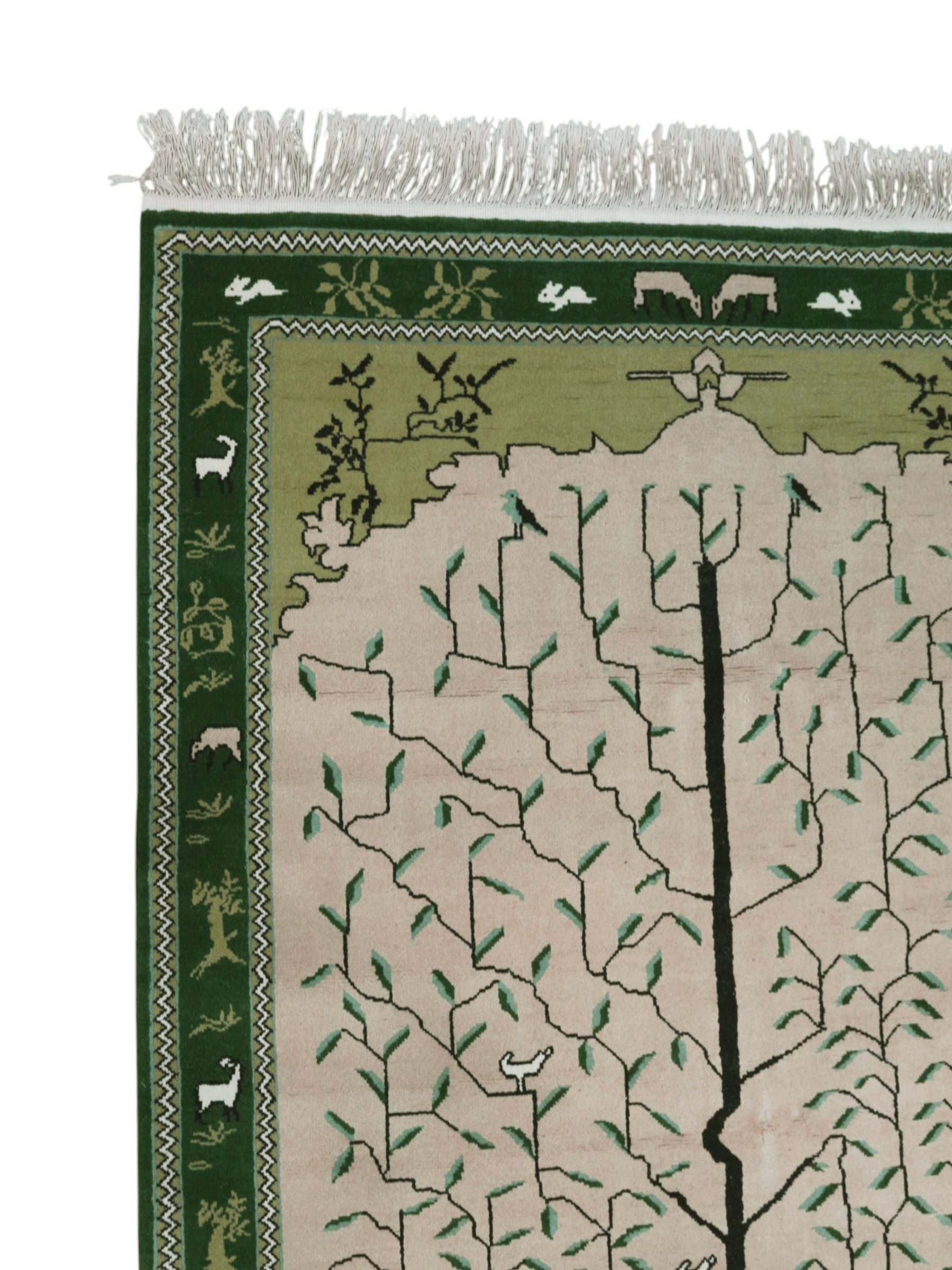 & Free ShippingLe Jardin des Origines is a handwoven masterpiece that celebrates nature in its purest form. At its heart stands a graceful tree of life, surrounded by gentle animals and birds, all brought to life in soft shades of green and ivory. Every detail tells a quiet story — a scene from an ancient, sacred garden.