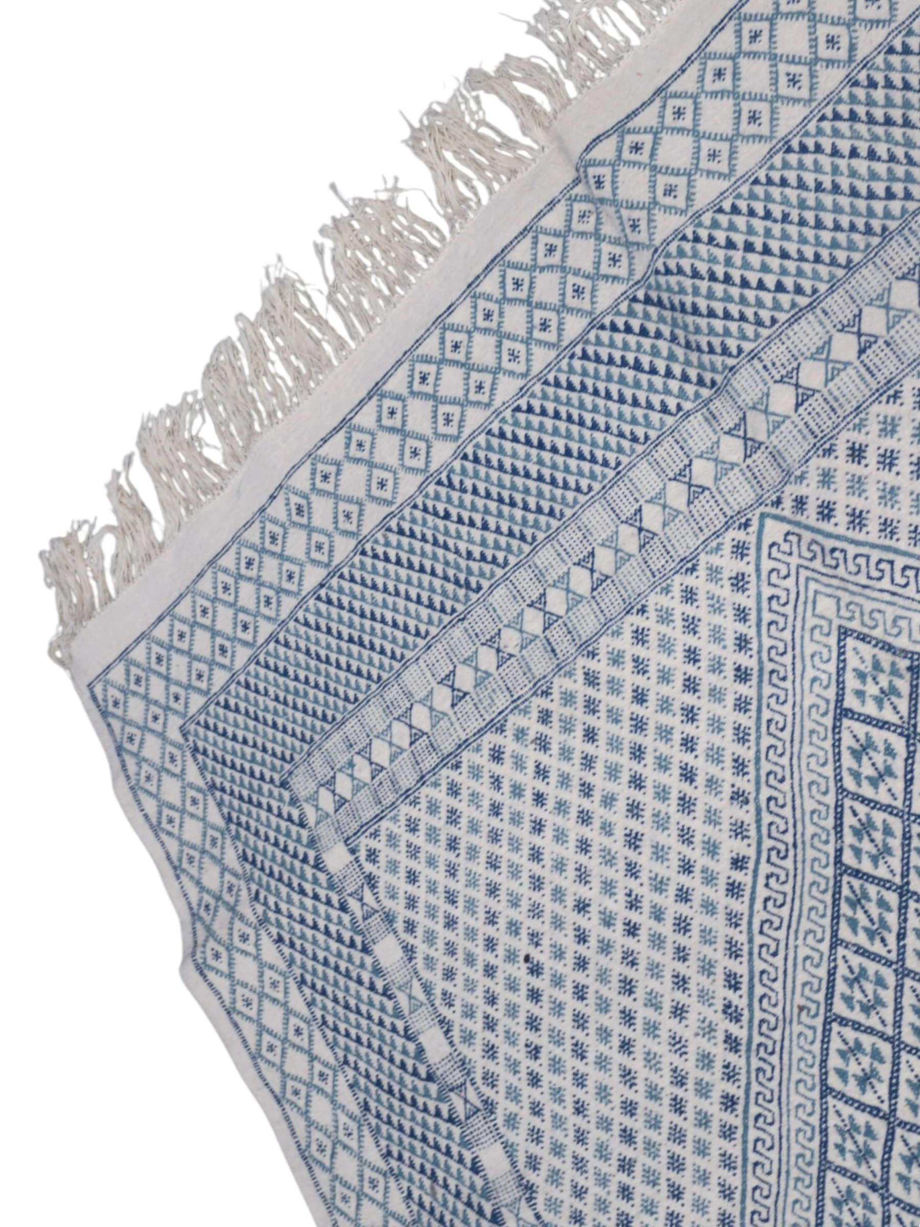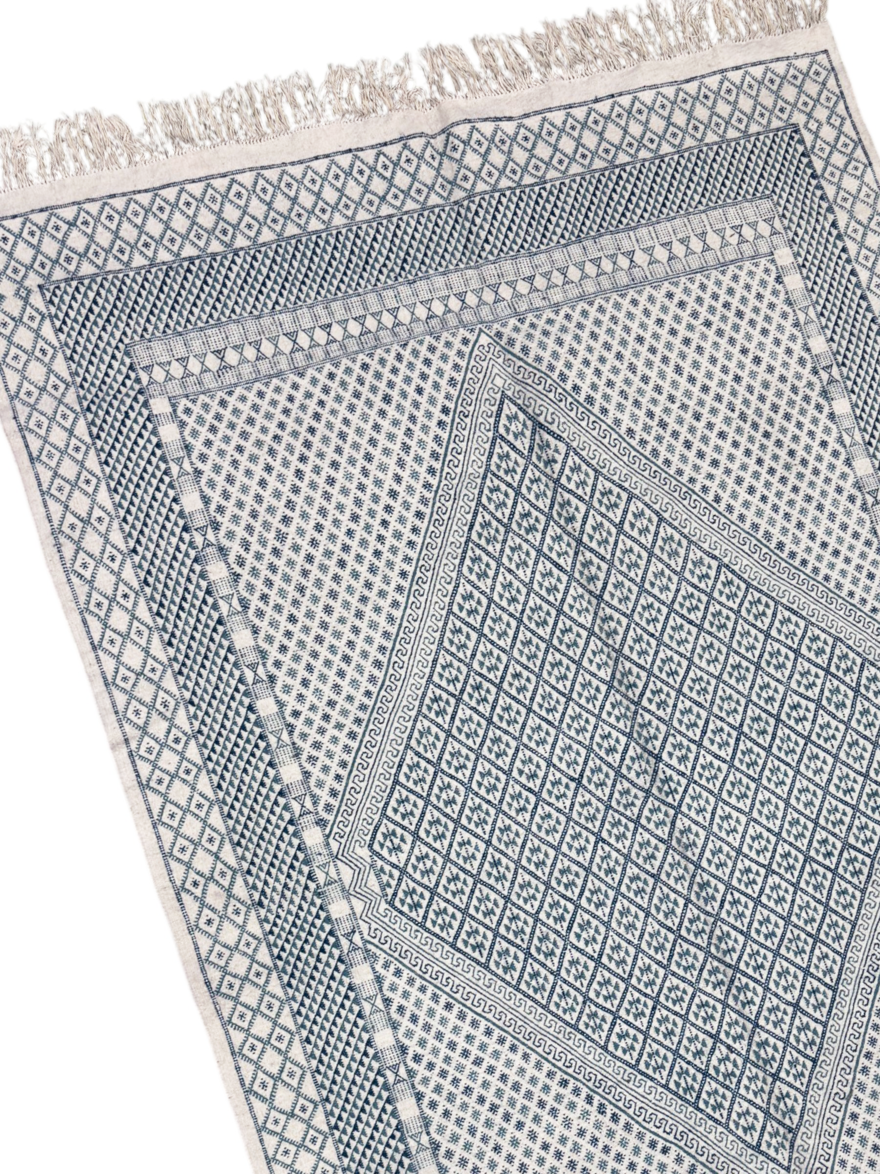 & Free ShippingWith its delicate geometric motifs in deep ocean blue on a soft ivory base, Sable d’Azur evokes the serene beauty of Mediterranean shores. Handwoven by skilled artisans, this rug brings a touch of refined tradition to any space. The diamond centerpiece and intricate border design celebrate the harmony of symmetry and cultural heritage, perfect for adding understated elegance to your home.